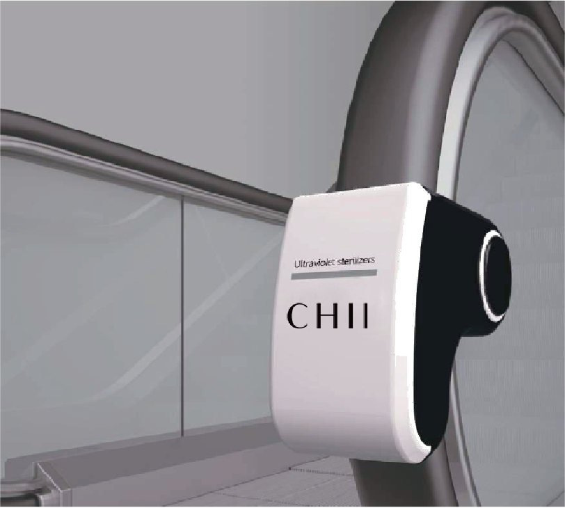 UVGI扶手電梯殺菌器不但容易安裝及佔用空間小,另一特點是無需接駁外來電力-裝置可以將扶手運作時的動能轉化為電力,內置殺菌燈可運作約1 萬小時。以一個商場每日營業 12 小時來計算,約兩年才需要更換殺菌燈。UVGI扶手電體殺菌器已獲得歐盟及韓國監管機構認證。